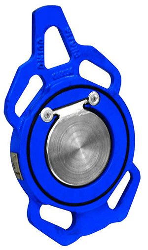 ساختار کلی شیر یک طرفه دریچه ای ویفری (Swing type wafer Check Valve) یا شیر یک طرفه دریچه صفحه ای همانند شیر یکطرفه دریچه ای استاندارد بوده و تنها تفاوت آن در نوع بدنه و طریقه اتصال شیر است. بدنه این شیر ها طول کمتری نسبت به شیر دریچه ای دارند، به همین دلیل نصب و اتصال آن در خط لوله بر خلاف شیر دریچه ای که از طریق پیچ و مهره انجام می شود، به صورت بین فلنجی می باشد. در سیستم های تاسیسات به دلیل عدم وجود فضای کافی از شیر یکطرفه ویفری لولایی استفاده می شود. دیسک با حرکت 90 درجه یا همان شبه آونگی با فشار سیال حرکت کرده و سیال را از خود عبور می دهد. در حالتی که شیر باز است، افت فشار آن نسبت به سایر حالت های شیر پروانه ای (Butter Fly) کمتر می باشد.