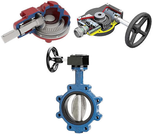 شیر پروانه ای با اکچویتور گیربکسی یا گیربکس دار، بواسطه کاربری آسان پر مصرف ترین عملگر روی این نوع از شیر ها می باشد و از سایز 8 اینچ تا سایز های بالا همانند سایز 88 اینچ استفاده می شود و با دو نوع گیربکس کوبل می گردد. نوع اول که دارای چرخدنده حلزونی می باشد و نیرو توسط چرخدنده حلزونی به شافت و دیسک شیر انتقال داده می شود و به راحتی با چرخش 90 درجه ای، سیال عبور داده می شود. در نوع دوم عملگر گیربکس پیچی با فلکه کوبل می شود، گیربکس با یک عدد پیچ مارپیچ و یک عدد چرخدنده، انتقال نیرو را به دیسک انجام می دهد، و چرخش به راحتی صورت می گیرد.