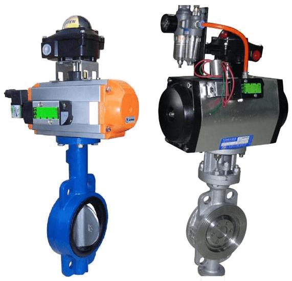 شیر پروانه ای با عملگر پنوماتیک به عنوان پر سرعت ترین شیر پروانه ای در باز و بسته کردن مسیر سیال استفاده می شود. این شیر با عملگر پنوماتیک کوپل می شود این نوع عملگر ها مانند عملگر های برقی به صورت تدریجی و قطع و وصلی موجود می باشند و با نصب شیر برقی 5 به 2 روی عملگر می توان با سیگنال PLC و با وصل باد پنوماتیک به عملگر دستور داد و آن را به راحتی باز و بسته کرد.